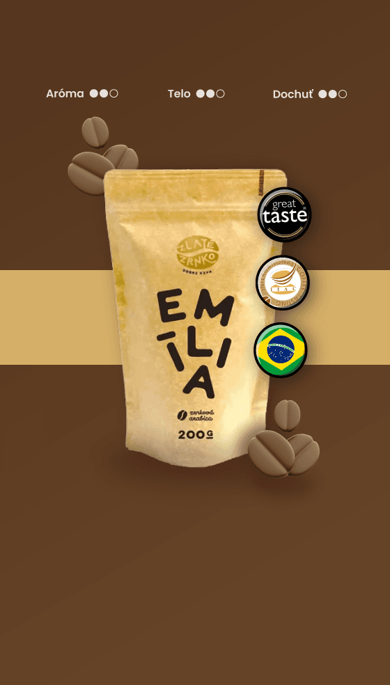 Káva Zlaté Zrnko – Emílie (Směs 100% arabika) „VYVÁŽENÁ“ – NEJPRODÁVANĚJŠÍ